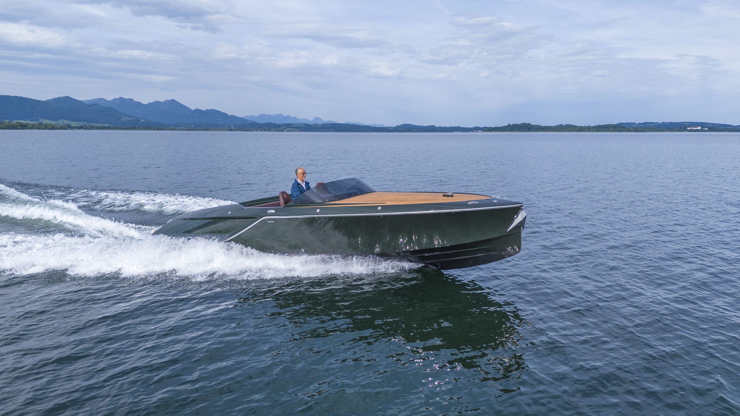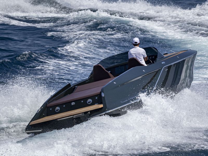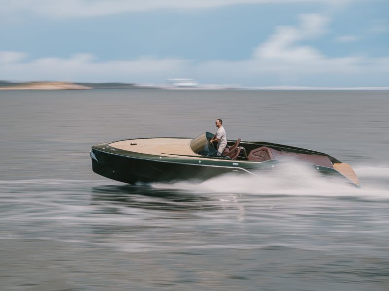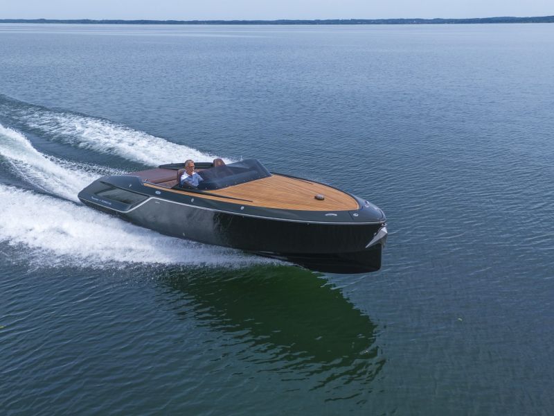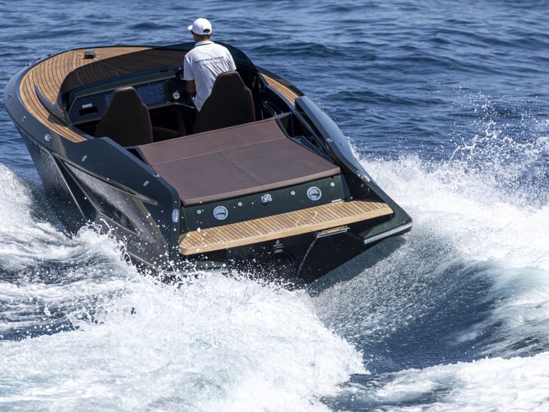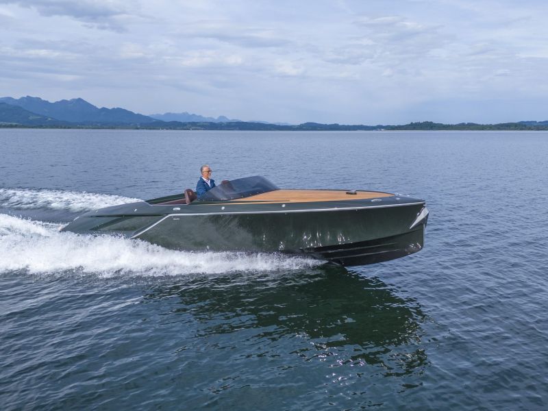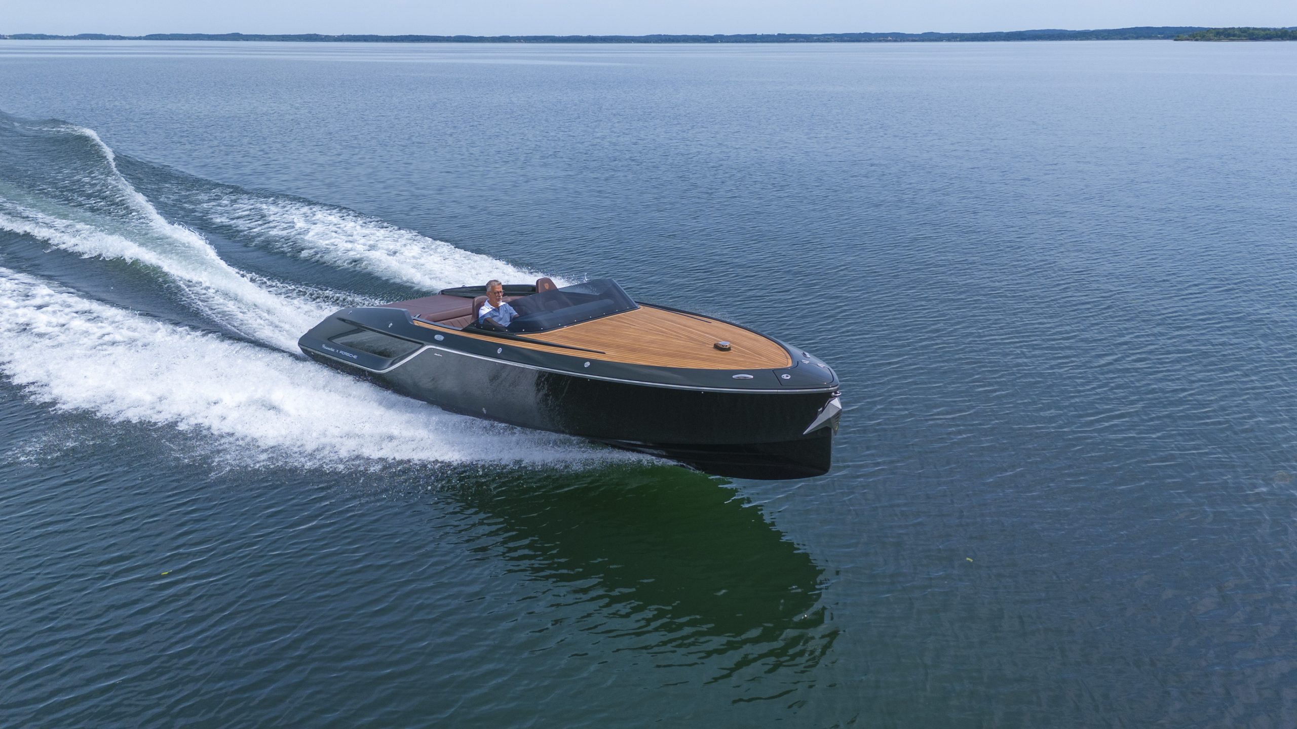 Frauscher x Porsche 850 Fantom mit vollelektrischem Antrieb des Porsche e-Macan