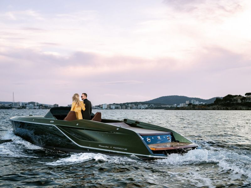 Frauscher x Porsche 850 Fantom + Porsche Macan Electric Motor und Porsche Design