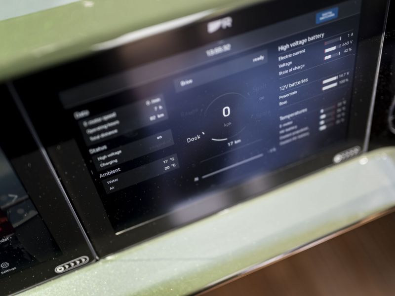 Im Boot leistet die PSM-Maschine bis zu 400 kW. Auch die Hochvolt-Batterie mit einer Bruttokapazität vom 100 kWh stammt aus dem Macan.