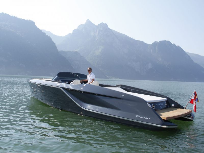 Die erfrischende Frauscher 858 Fantom ist ein revolutionärer 8,6 Meter langer und trailerbarer Day Cruiser mit bestechendem Design. Die Frauscher Formsprache hebt sich wohltuend von Booten dieser Klasse ab und bringt die Individualität des Bootseigners zum Ausdruck.