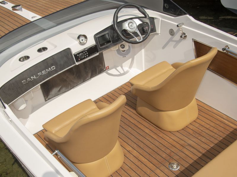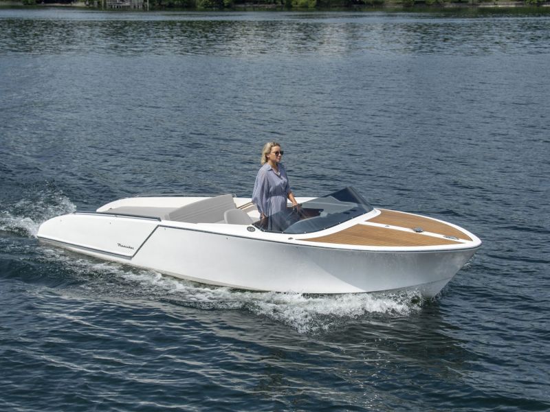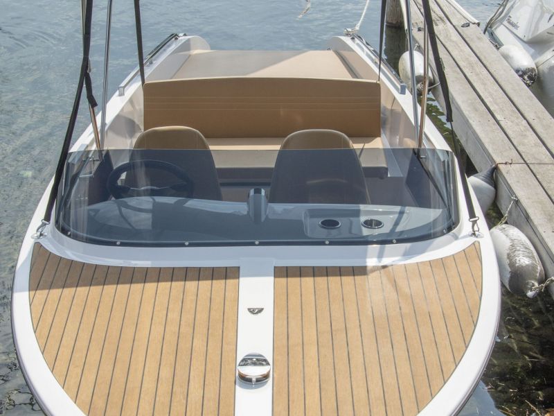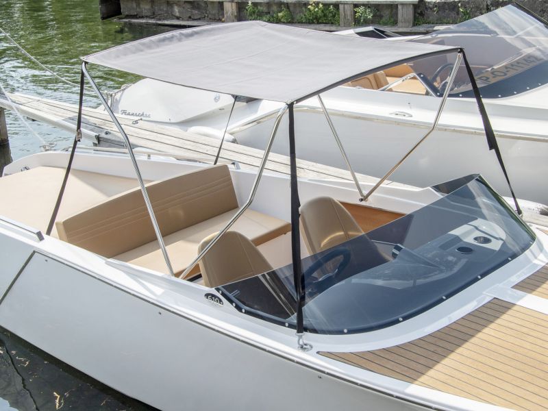 Viel Platz im Cockpit und eine große Liegefläche und Badeplattform garantieren entspanntes Fahren und Spaß an Bord für bis zu 5 Personen. Durch ihre schlanke Form und kurzen Maße passt die 610 San Remo in fast jeden Liegeplatz und in noch so enge Bootshäuser. Durchdachte Details, wie das einfach zu bedienende Bimini Verdeck, machen das Elektroboot zu einer ausgezeichneten Wahl für entspannte Touren.